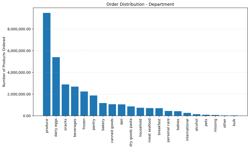 To analyse product popularity, departments were grouped into simplified categories based on shelf life, with a separate category for miscellaneous items: