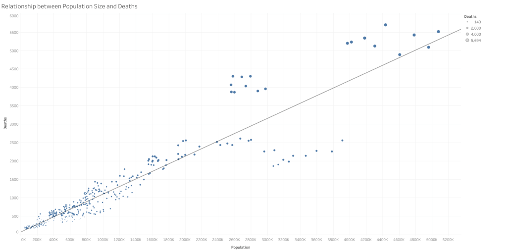 Q2 – Is there a relationship between population size and influenza-related deaths?